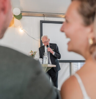 Voor mij gaat een bruiloft niet alleen om het bruidspaar op de foto te zetten of hun op hun gemak te laten voelen. Ik vind tussendoor contact maken met de daggasten net zo belangrijk. Daar zit ook mijn kracht, op deze manier kan ik jullie dag namelijk het mooiste vastleggen.