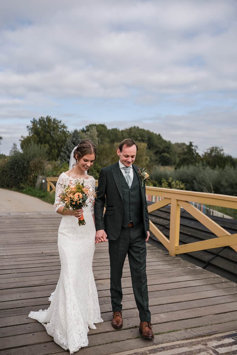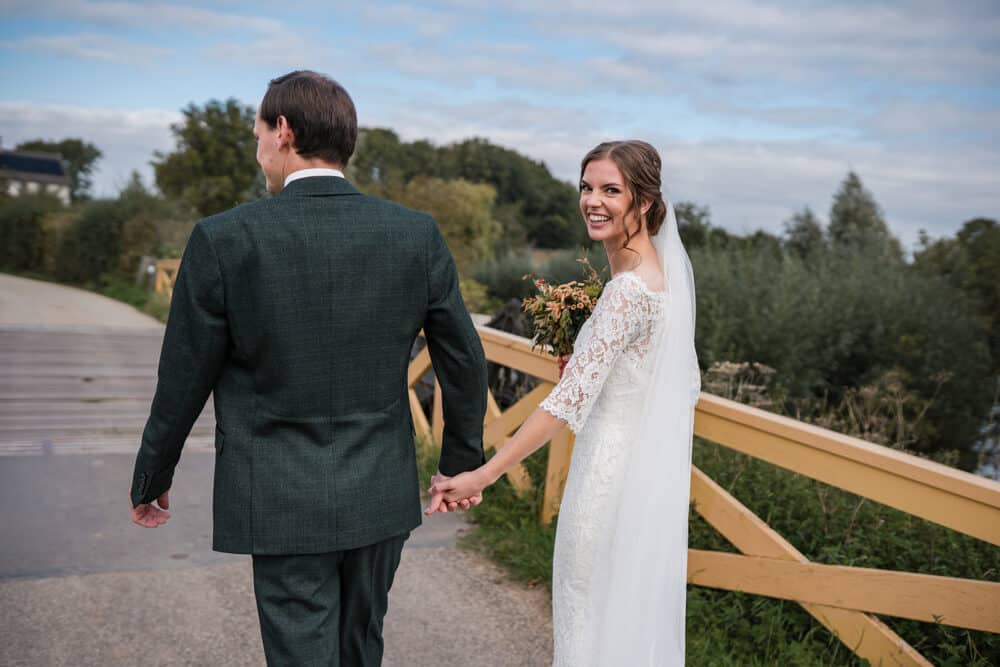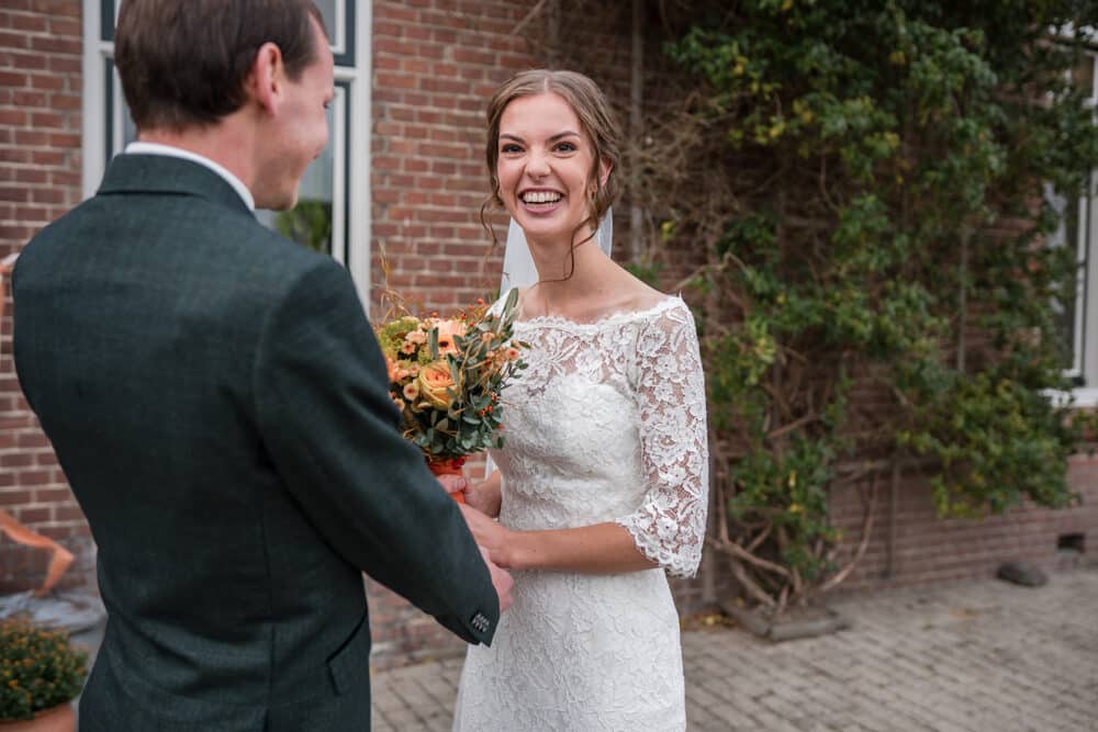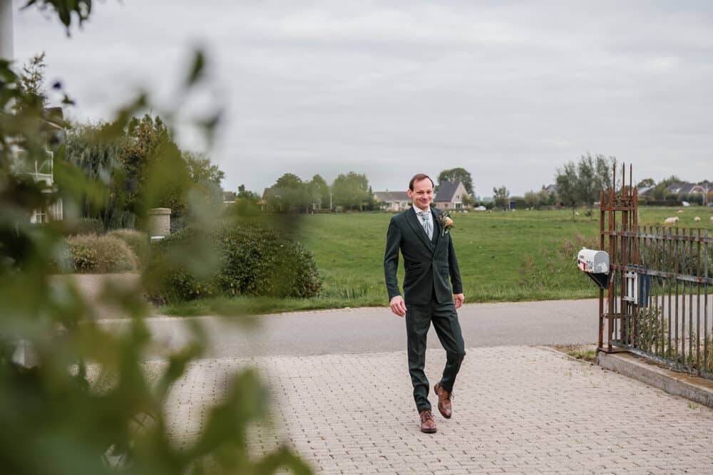 Tot zo ver liep alles op planning… tot we een belletje kregen. De bruidegom wilde komen maar de auto deed het helaas niet. Alles geprobeerd maar lukte helaas echt niet. En die moest uit asperen komen. Gelukkig was er een ceremonie meester bij de bruidegom. Dus zijn ze samen in de mini gestapt van de bruidegom zodat die toch zijn bruid kon ophalen! (Tijdens de shoot is er nog een backup auto geregeld voor de rest van de dag)