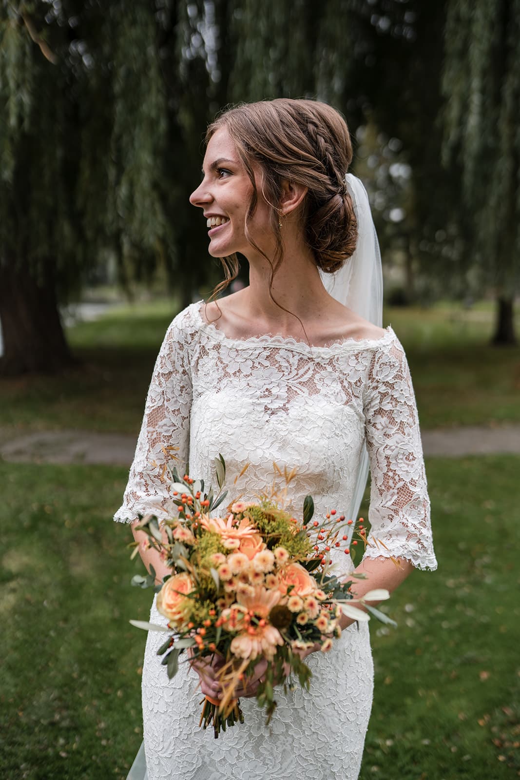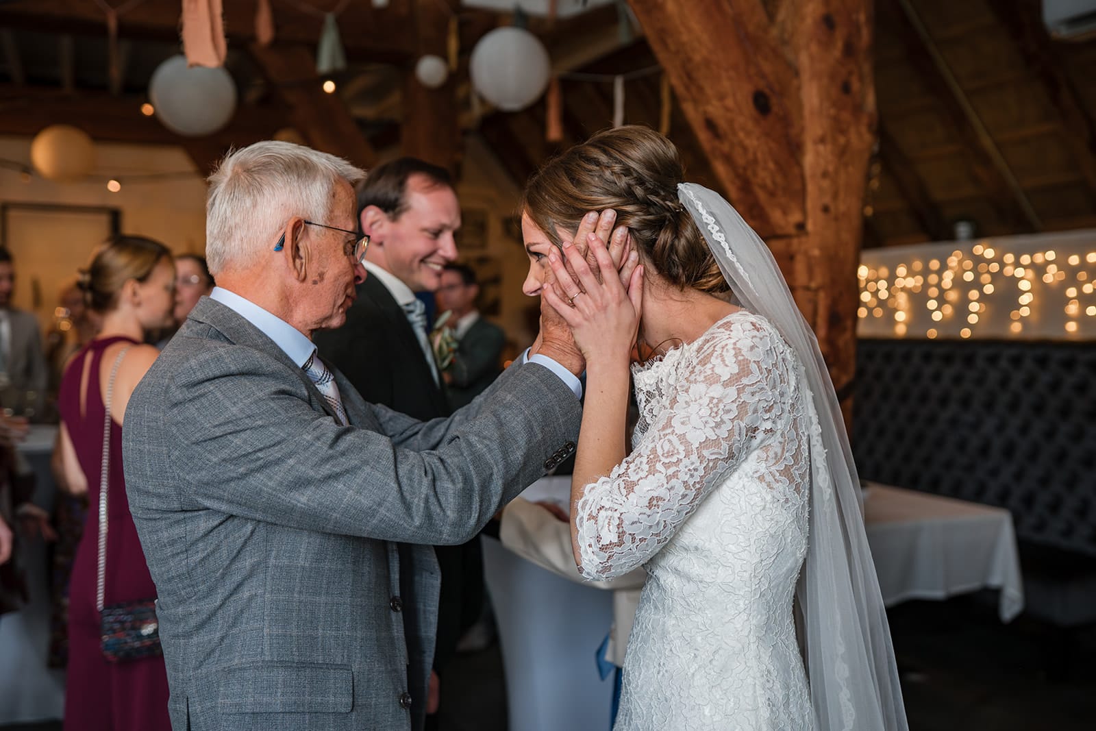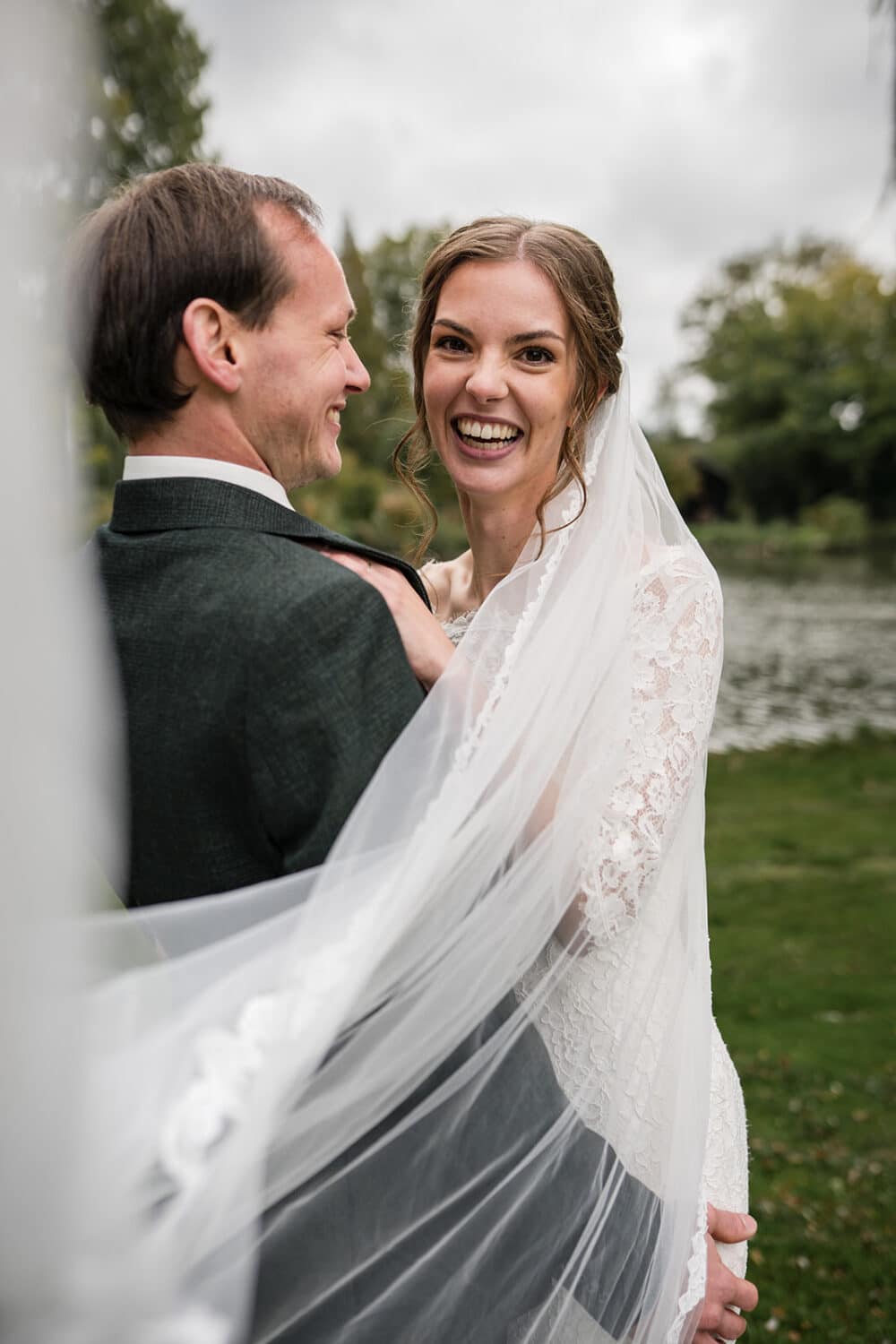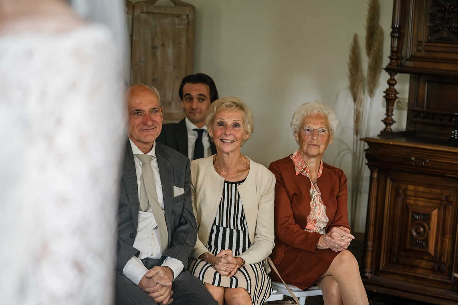 De laatste 10 minuten kwamen de neefjes ook nog even langs om met het bruidspaar op de foto te gaan. Die vonden alleen de sluier erg leuk… om aan te trekken. Gelukkig zat die goed vast. (Nek van bruidegom is nog oke!)