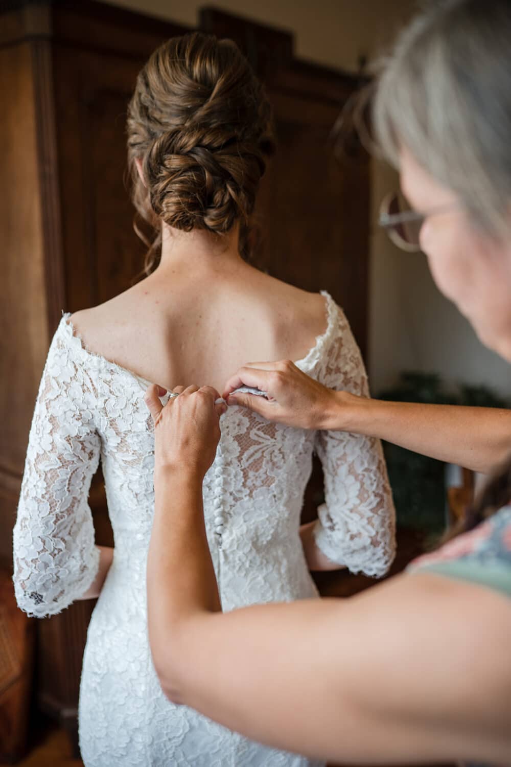 Toen ik binnen kwam werden de laatste puntjes op de i gezet bij de makeup. En toen mocht de jurk aan. Ben zelf niet getrouwd, maar kan mij helemaal voorstellen dat je als bruid niet kan wachten om die jurk eindelijk de gehele dag aan te mogen.