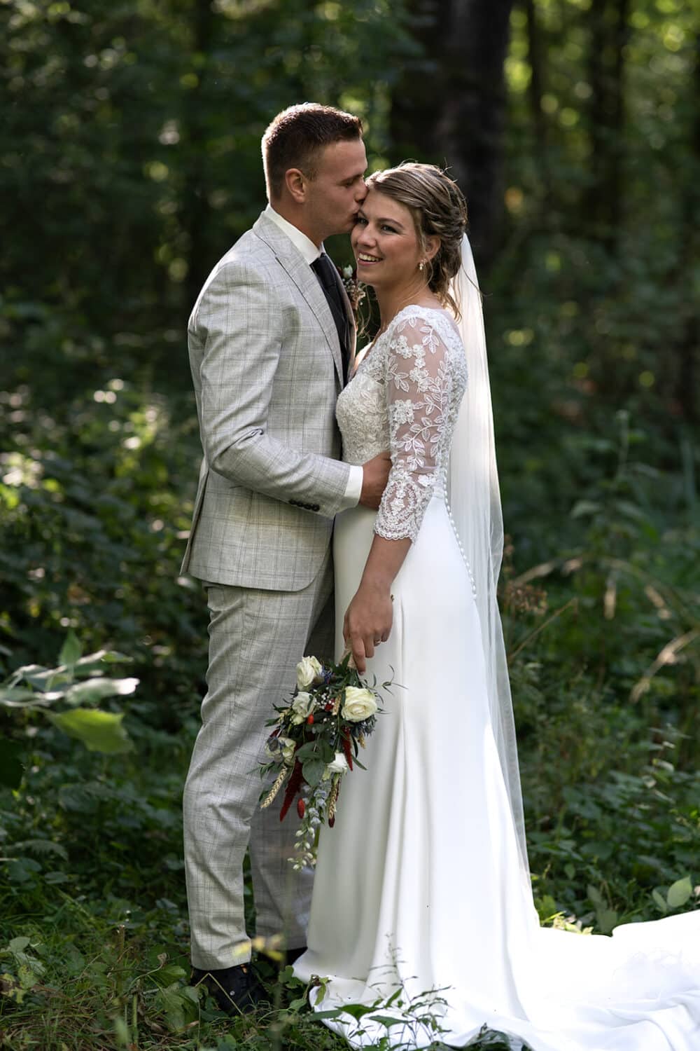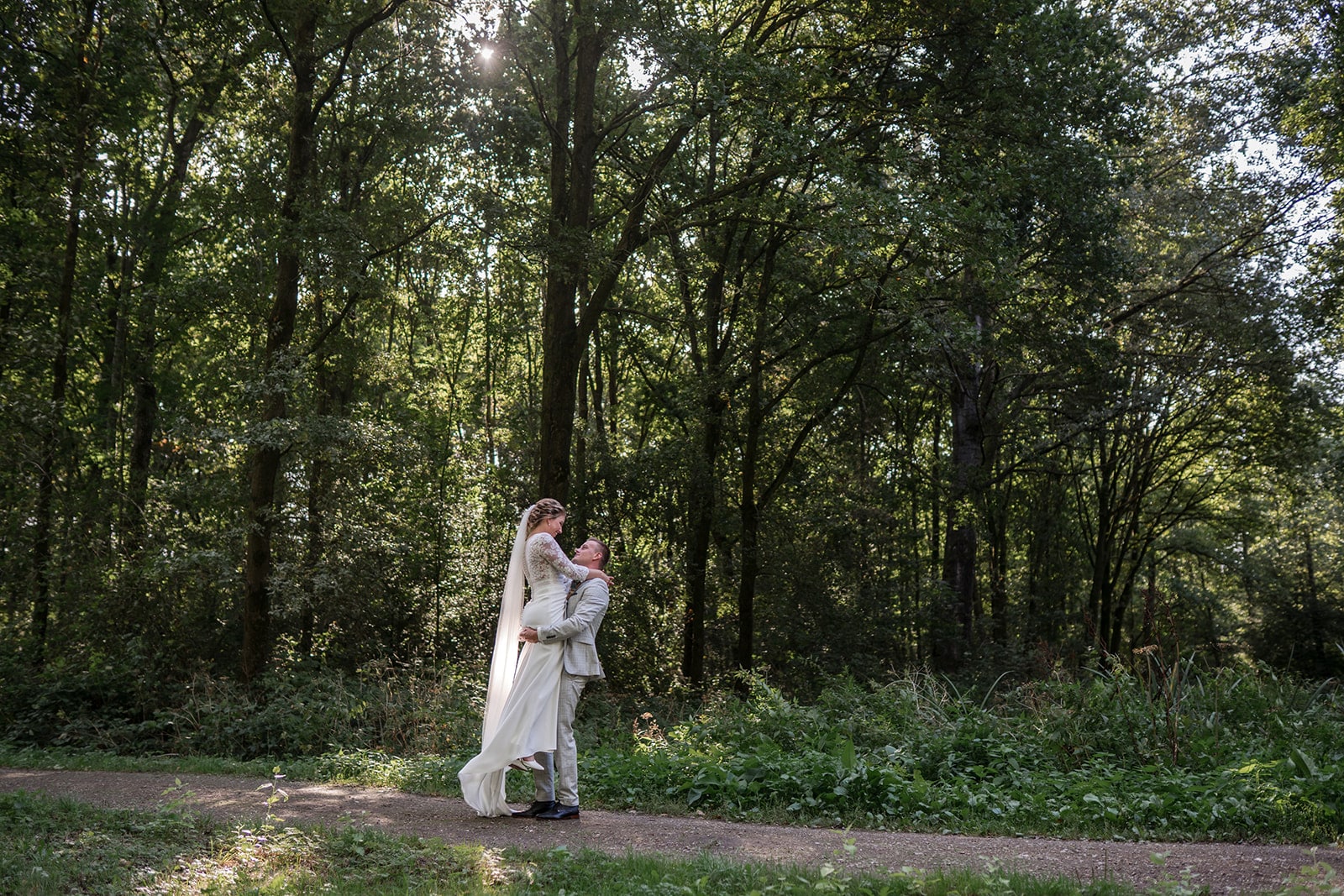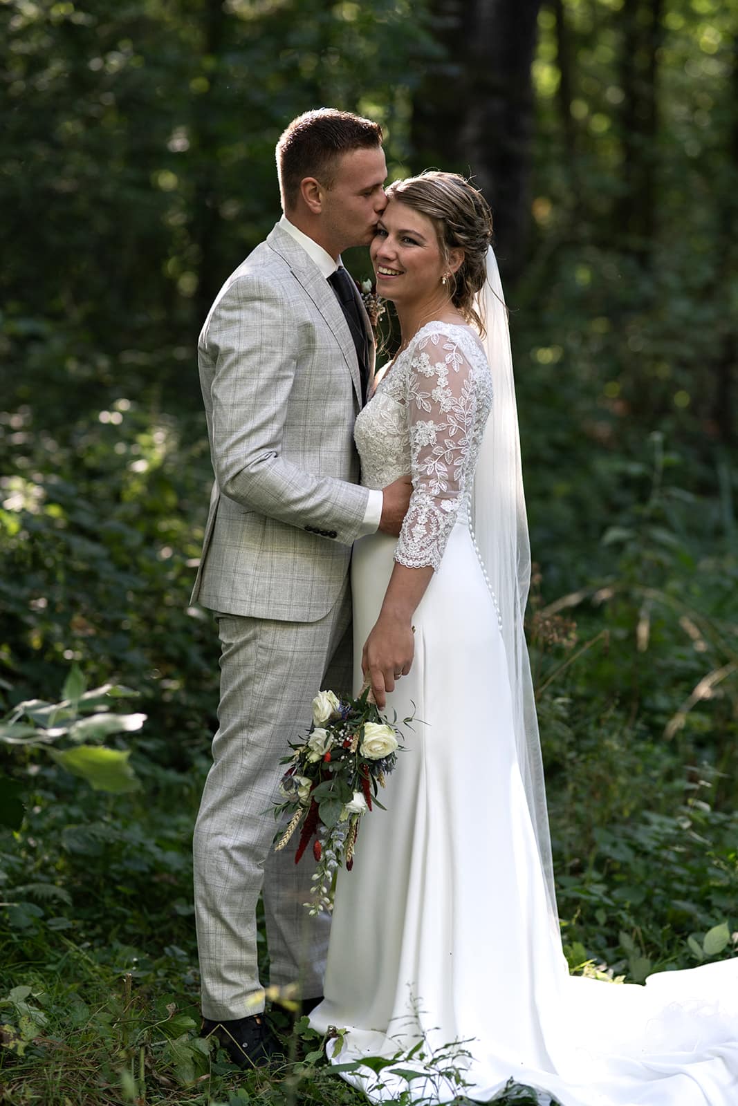 Ze wilde ook een echte bos foto, het liefst waarbij je geen pad meer zag. Dat hoef je tegen mij maar 1x te zeggen. En 5 tellen later stuur ik je de brandnetels in! Hebben natuurlijk even goed opgelet zodat de jurk heel bleef, en er even een doek ondergestopt.