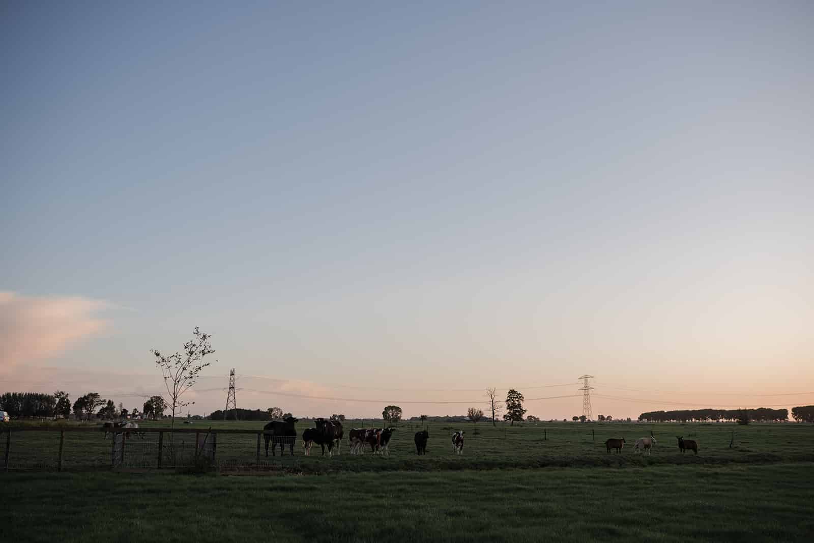 Ik kwam aan en de zonsopgang was zo mooi! Dus ik heb binnen even hoi gezegd en ben daarna weer even naar buiten gelopen. Om de tent en de koeien even op de foto te zetten. Binnen was de sfeer heerlijk relaxt en alles verliep zoals gepland.