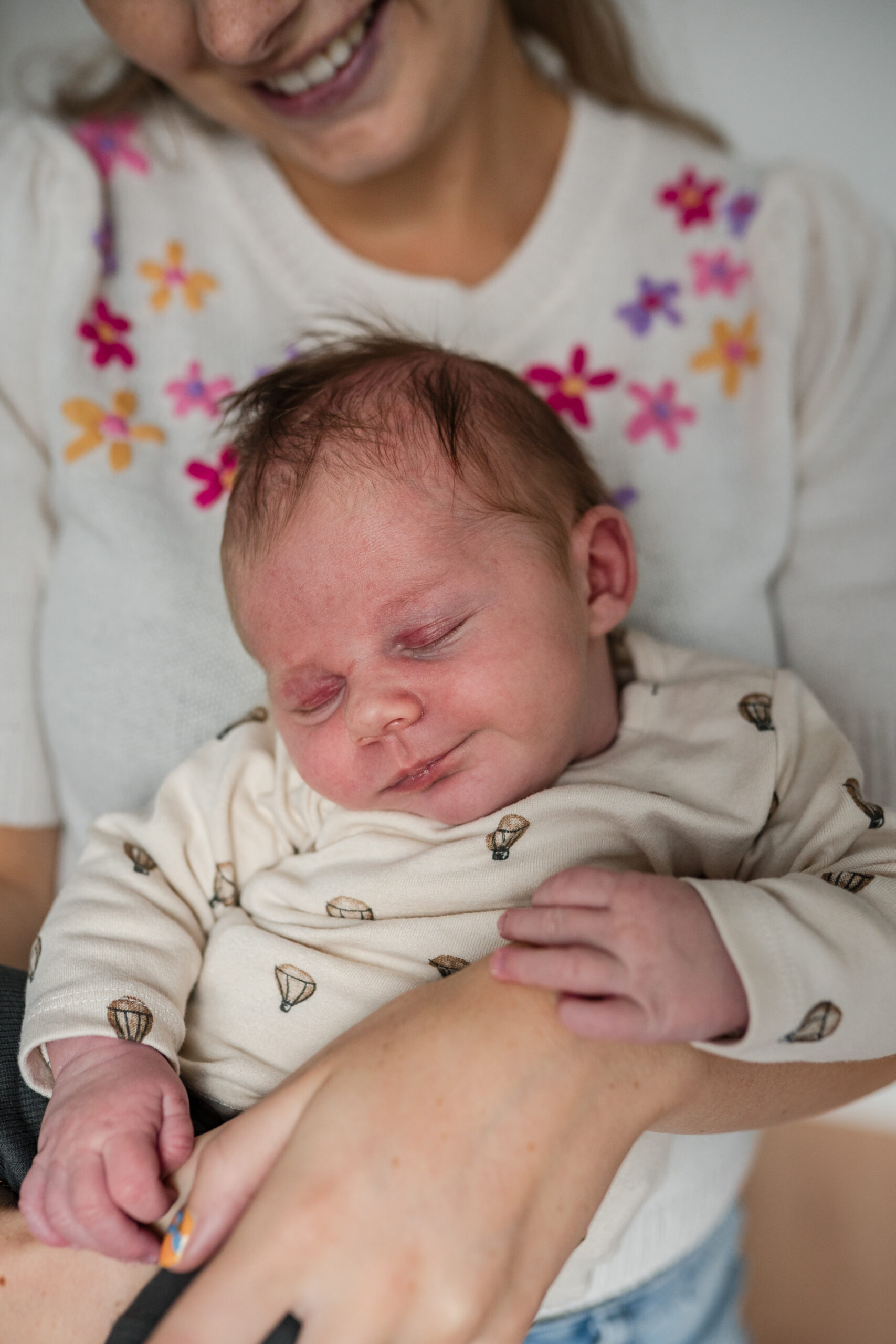 Zie dat kleine lachtje op de foto hiernaast. Dan smelt je toch? Als dat al geen reden is om een newborn shoot te boeken…